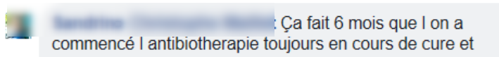 « Nos médecins généralistes ont en effet observé qu’un traitement de longue durée, constitué par des cures de combinaisons d’antibiotiques connus, induisait dans 60% des cas une amélioration considérable, parfois même une disparition des symptômes, l’enfant pouvant mener une vie familiale et scolaire normale. »