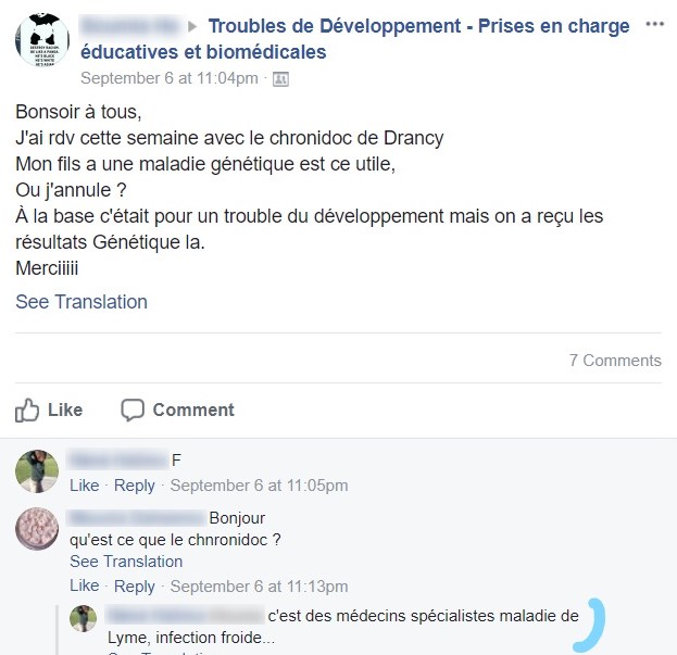 Vous trouverez ci-dessous pour quelques ordonnances postées sur les réseaux sociaux par des mères inquiètes une capture d’écran de la prescription, un décodage sous forme de tableau, mais également le contexte, à savoir les discussions générées par ces publications, soigneusement anonymisées bien sûr. Vous pouvez cliquez sur les captures d’écran pour les agrandir.